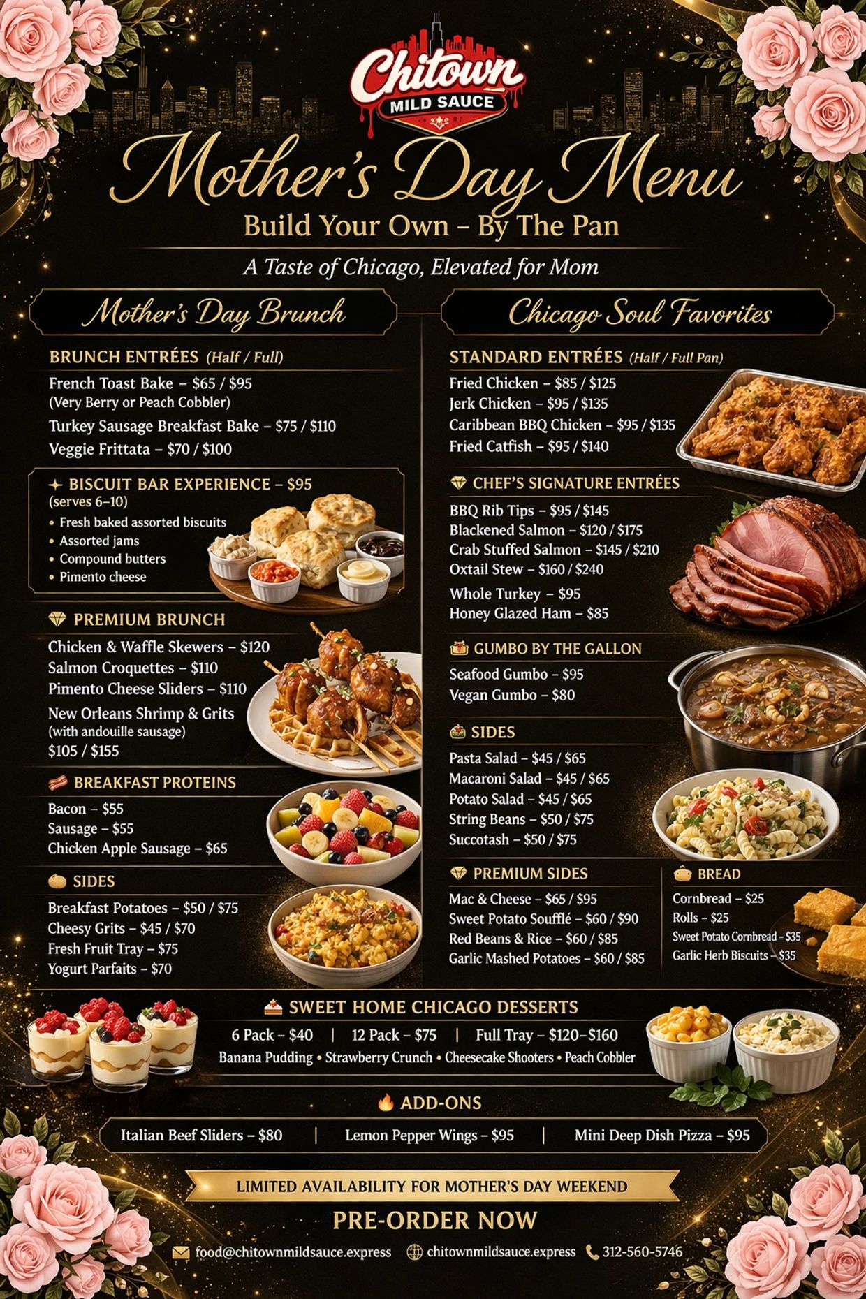 From brunch favorites to soulful dinner classics, our Mother’s Day packages are designed to bring family together without the stress of cooking.